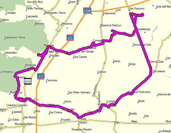 Albignasego (Agricampeggio Azienda Agricola SAN PIO X) – Battiglia Therme – Monselice – Albignasego (Agricampeggio Azienda Agricola SAN PIO X)