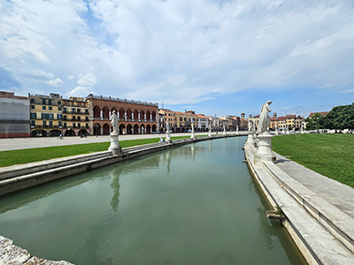 Der Tag hat heute schon heiß begonnen, und wir sind gleich nach dem Frühstück nach Padua gefahren. Nahe des Piazza Prato della Valle haben wir uns eingeparkt und sind dann die Fußgängerzone von Padua gegangen. Bei einem Lokal haben wir uns etwas zu Trinken und eine Kleinigkeit zu Essen besorgt. Später dann hat es dann noch einen Aperol Spritz im Schatten eines Gastgarten gegeben (natürlich nur für Helga, weil ich als Fahrer nur alkoholfreie Getränke trinke). Am Heimweg sind wir noch beim Supermarkt vorbei gefahren, und haben ein paar Dinge eingekauft. Getränke, Obst, Brot und ein paar super schöne frische Seezungen haben wir mitgenommen. Zuhause sind wir nach dem Verstauen sofort zum Pool gegangen. Nach einer Siesta haben wir uns das Essen gemacht und die Siesta danach gleich fortgesetzt 🙂 . Am Abend haben wir uns Gedanken über das nächste Ziel gemacht, und den Bolsena See als nächsten Stopp ausgewählt. Einen uns ansprechenden Agri Camping haben wir nicht gefunden, und bei der Durchsicht der Campingplätze sind wir wieder beim Lido Camping Bolsena hängen geblieben. Dort waren wir 2011 schon einmal, aber in der Hauptsaison und nur mit Wohnmobil und den Rädern. Dh. wir haben damals relativ wenig gesehen von der Umgebung und es war alles brechend voll. Aber der Campingplatz war damals trotzdem ok. Wir haben uns einen der großen Plätze in der 3. Reihe reserviert, was eigentlich nicht notwendig gewesen wäre, weil sowieso nichts los war. Aber was weiß man schon im voraus und es sind ja auch gerade die Pfingstferien der Süddeutschen.