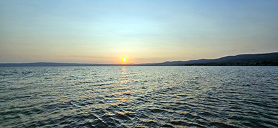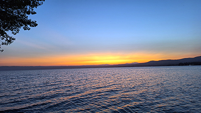 Heute nach dem Frühstück sind wir wieder baden gegangen und danach wieder einmal eine Runde Einkaufen in den nahen Supermarkt. Da wir morgen Weiterfahren wollten, haben wir danach die übliche Prozedur mit Aufladen und Putzen gemacht. Am Nachmittag haben wir die restlichen Seezungen und den Oktopus gegrillt und dann eine Siesta gemacht. Dazwischen sind wir immer wieder einmal in den See baden gegangen. Am Abend hat es kurz zu regnen begonnen, aber durch die Markise ist alles trocken geblieben, und der Spuk war auch schnell wieder vorbei. Dafür war es dann den restlichen Abend sehr schwül und heiß.