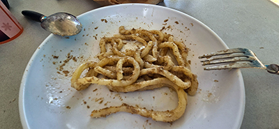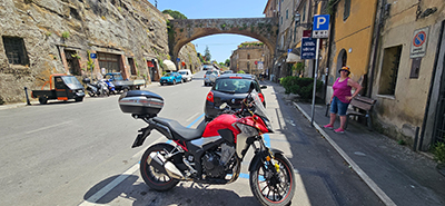 In der Früh war das selbe Programm wie gestern, aber danach sind wir in Richtung Pitiligiano gefahren. Die Strecke ist landschaftlich sehr schön, hat Millionen Kurven und überall blüht es noch um die Zeit. Aber heute war mehr Wind als gestern. deswegen musste man ein wenig aufpassen mit dem Motorrad. In Pitiligiano, am Anfang der Zona Traffico Limitatoe, haben wir uns eingeparkt und sind in die Altstadt spaziert. Da wir zeitlich gerade noch in der Mittagszeit waren, haben wir uns ein Lokal gesucht und jeder eine Portion Nudeln bestellt. Danach sind wir eine Runde durch den Ort gegangen, und haben in einem Trüffel Laden ein paar Dinge eingekauft. Retour sind wir die selbe Strecke gefahren, und wieder beim Supermarkt in Bolsena stehen geblieben. Da hat sich gerade eine große Runde Tiroler Burschen mit mehreren Vans, mit viel Bier und auch ein paar Lebensmittel eingedeckt, und das Bier dann gleich am Parkplatz auch verkostet 🙂 . Zurück am Stellplatz haben die Italiener schon wieder für einen ordentlichen Lärmpegel gesorgt. Alle haben zugleich gesprochen und ein paar waren dabei mit einem wirklich lauten Organ. Wir haben auch den Griller angeworfen, und Hühnerspieße. Gemüse und das restliche Brot gegrillt. Danach war bei uns, und nach Nudeln und Grillen auch bei den Italienern 😉 , eine Siesta und Baden angesagt.