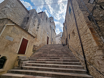 In der Früh war wieder Wind, so haben wir die Markise drinnen gelassen und uns in den Schatten vor das Wohnmobil gesetzt. Danach haben wir den zweiten Versuch mit Vieste gestartet, diesmal ohne Probleme. Dort haben wir uns eingeparkt und einmal in Ruhe einen Cappuccino und ein Cola getrunken. In Mitteleuropa haben heute die Unwetter gewütet, und auch hier war das Wetter nicht ganz lupenrein. Ein Teil war der Wind, aber es sind auch einige Wolken gewesen und ab und zu hat es ganz wenig zu tröpfeln begonnen. Das und die Hitze, haben für eine schwüles Klima gesorgt das sich gewaschen hat. Trotzdem sind wir einen großen Teil von Vieste abgelaufen, und haben viele Fotos gemacht. Wieder vom Hügel unten, und und etwas abseits vom Trubel, haben wir bei einem schattigen Lokal eine Kleinigkeit gegessen. Dann sind wir zurück zur Honda und auf die andere Seite von Vieste gefahren, wo wir noch ein paar Fotos gemacht haben. Zurück am Campingplatz habe ich den italienischen Nachbarn auf seinem Mülleimer stehen gesehen, und mit den Fingern die sich ablösende Folierung vorne abziehen. Da ich das Thema von unserem Globebus auch kenne, und mir ein Ceranfeld Schaber hier gute Dienst geleistet hat, habe ich ihn gefragt ob ihm das ev. helfen könnte. Zuerst hat er nicht gewusst was er damit machen soll, nach einem ersten Versuch hat sich aber ein Grinsen im Gesicht und Begeisterung breit gemacht. Ich glaube er hat mit sehr mäßigem Erfolg schon länger daran gearbeitet. Dann hat sich noch der Burgenländer gegenüber erbarmt und ihm einen vernünftigen Hocker zum Raufsteigen gebracht, bevor der Mülleimer den Geist aufgibt und er runterfällt. So geht länderübergreifende Hilfe unter Campern 🙂 und ich denke die Österreicher sind gerade in seiner Achtung weit hinauf gestiegen. Binnen einer Stunde hatte er die Folie links und rechts vorne und hinten beseitigt, und war dann so richtig happy. Wir sind wieder auf unseren Strandplatz zum Baden gegangen, aber durch den Wind und die Wellen war das Wasser heute gar nicht so warm. Heute war ein lateinamerikanischer Tanzkurs am Programm, aber das war eher mau anzusehen. Und auch die Animateure die neben Pepe, dem Chefanimateur, mitmachen sollten, habe mehr bemüht als gekonnt ausgesehen. Aber ein italienischer Opi hat den Vogel abgeschossen. Er hat sich übertrieben, aber immer im Takt, verrenkt und mit dem A..sch gewackelt, wie es keine Frau gekonnt hätte 🙂 . Dh. in Summe war es auch wieder lustig anzusehen. Und auch die paar, eigentlich immer die selben, die sich bei Pepe eingeschleimt haben und ihm nicht von der Pelle gerückt sind. Zum Kochen hatten wir keine Lust, deswegen habe ich heute zwei Pizzen im Lokal geholt. Sie waren günstig und sehr gut, was will man mehr. Ich bin gerade mit den Pizzen zurück gekommen, da ist unser älterer italienischer Nachbar mit einer Flasche guten Rotwein aus Sizilien gekommen. Ein angehauchter Handkuss für Helga, ein fester Händedruck für mich, ein kurzer Redeschwall von Dankesworten, und weg war er wieder 🙂 . Und der Rotwein hat ausgezeichnet zu den Pizzen gepasst. In der Nacht war es heute ein wenig kühler, es hat sogar ein paar Minuten getröpfelt.