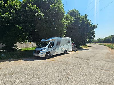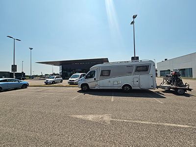 Heute sind wir um 07:00 Uhr aufgestanden, haben alles für die Fahrt hergerichtet und das Frühstück bis auf das Gebäck fertig gemacht. Um 08;00 Uhr als sie geöffnet haben, habe ich noch ein paar Weckerl für die Fahrt und etwas Süßes für das schnelle Frühstück geholt, und um 08:30 sind wir schon los. Die ersten 50 Kilometer waren wieder anstrengend wegen der engen Straße, den vielen Kurven und dem Verkehr in beide Richtungen. Nach circa 2 Stunden waren wir endlich auf der A14, wo aber auch viel Verkehr war. Da die Pfingstferien der Süddeutschen auch aus waren, war doch einige am Heimweg. Heute war es so richtig heiß, das Thermometer hat die ganze Zeit so um die 36 Grad angezeigt und die Fahrerhausklima hatte gut zu tun. Helga hat dann zwei Weckerl mit Schinken als zweites Frühstück hergerichtet, die wir auf der Fahrt verspeist habe, Noch ein paar hundert Kilometer weiter, haben wir bei einer Station eine kurze Pause eingelegt, und uns etwas Warmes geholt. Im Wohnmobil wurde es auch recht schnell heiß, trotzdem Lüften. So sind wir bald wieder los und gegen 18:00 Uhr dann in Padua beim selben Agri Camping wie bei der Herfahrt angekommen. Wir hatten uns hier schon vorab einen der großen Plätze reserviert. Und das war gut, denn der Camping war randvoll. Der Betreiber war im Stress, weil hinter uns sind noch drei weitere gekommen und er macht die Einführung normalerweise recht genau und gewissenhaft. Aber ich habe ihm gesagt er soll sich um die anderen kümmern, wir waren vor drei Wochen da und ich kenne alles schon. Wir hatten den Platz neben dem von vor drei Wochen, und das Einparken war super einfach. Wir brauchten auch keine Keile, dh. Markise, Teppich, Tisch und Sessel raus, und den Strom einstecken und wir waren fertig. Es war jetzt lauter als beim ersten Besuch, aber die Duschen waren trotzdem immer super sauber, Am Abend haben wir einen kalten Imbiss gemacht, zum Kochen hatten wir keine Lust