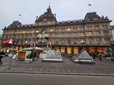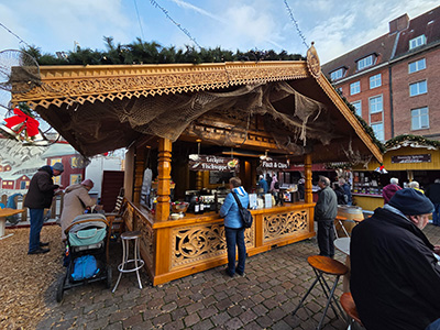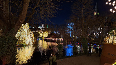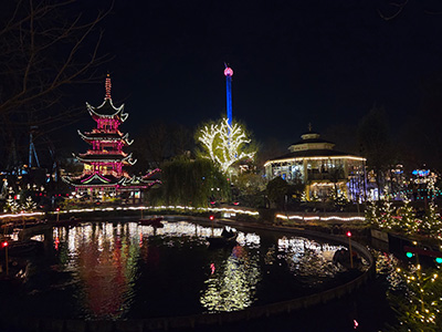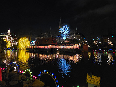 Heute konnten wir uns etwas ausschlafen, da wir erst gegen 13:00 Uhr in Kopenhagen sein sollten. Nach dem Frühstück sind wir zur Bühne gegangen und haben dem Kapitän zugehört wie er eine halbe Stunde lang seine Entscheidung erklärt und gerechtfertigt hat. Danach haben wir uns noch den Vortrag über Kopenhagen angehört, bevor wir wieder einmal Essen gegangen sind 😉 . Während dem Essen kam wieder eine Ansage vom Kapitän, und wir befürchteten schon Schlimmes. Der Kapitän hat uns wissen lassen, dass die Aida Prima bei dem Wind nicht alleine anlegen kann, und er deswegen einen Lotsen und einen Schlepper angefordert hat. Grund war dass sich das Wetter nicht wie erwartet verhalten hat, und der Wind nicht abgeflaut war. Da wir auf den Schlepper warten mussten, wurde es kurz nach 14:00 Uhr, bis wir endlich am Kai gelegen sind und die Möglichkeit zum Landgang war. Da hier alle mit dem Shuttle oder dem Hop on Hop off Bus weg mussten, haben wir noch ein wenig gewartet bis der ärgste Ansturm vorbei war. Wobei man kann natürlich auch 2 Stunden gehen, oder ein Stück gehen und mit den Öffis in die Stadt fahren, beide ist aber mühsam und viel langsamer als das Shuttle. Und Taxi oder Uber sind um einiges teurer. Vorallem weil wir am Abend davor unsere zwei Mal 15€/Person für jeden Tag, gegen das happy hour Angebot beide Shuttles für 20€/Person getauscht haben. Gegen 15:00 Uhr sind wir dann auch los und zu den Bussen hinunter. Das Shuttle brachte uns in die Nähe von der uns schon bekannten Meerjungfrau. Von dort sind wir eine Brücke, die ein richtiger Rad Highway war, bis zum Bahnhof Oesterport gegangen. Nach ein wenig suchen sind wir zur Erkenntnis gekommen, das wir noch weiter zur Metro Station Oesterport gehen müssen. Mit der M3 sind wir bis zur Station Rådhuspladsen gefahren. Die Tickets haben wir mit der vorher installierten App Rejsekort gekauft und per eingegebener Kreditkarte bezahlt. Bei der Start Station wählt man die Personen aus und schiebt einen Regler nach rechts, beim Ausstieg wieder nach links, und kurz danach bekommt man den Preis angezeigt. Und am nächsten Tag kommt per Email die Rechnung. Vom Rådhuspladsen geht man noch ein paar Meter und dann ist man am Eingang vom Tivoli. Der weltberühmte Kopenhagener Tivoli ist nicht nur ein Vergnügungspark, vielmehr ist es ein kleines Wunderland mitten in Kopenhagen. Der Weihnachtsmarkt im Tivoli zählt zu den besten in ganz Skandinavien und ist ein unvergessliches Erlebnis, und dafür zahlt man dann auch gerne den Eintritt von ca. 24 Euro. Wir haben uns den ganzen Park angesehen und zum Schluss auch einen Luksus Gløgg getrunken. Der dänische Glühwein hatte es in sich, und wir waren froh das wir nicht mehr selbst fahren mussten 🙂 . Von hier sind wir dann wieder zum Rathausplatz retour gegangen, mit der M3 zur Station Oesterport retour und dann zu Fuß weiter zum Shuttlebus. Ein paar Meter vor dem Shuttlebus hat es zu nieseln begonnen, dh. wir haben unseren Landgang gut getimt. Zurück am Schiff mussten wir wieder durch die Sicherheitskontrolle und dann sind wir schnell in unsere Kabine uns umziehen gegangen. Wirklich viel essen wollten wir nicht mehr, deswegen sind wir nur auf einen kleinen Teller frisch geratene Meeresfrüchte mit Nudel und Gemüse gegangen, und einen kleine Teller Käse. Dazu haben wir uns noch ein oder ev. auch zwei 😉 Glas Rotwein gegönnt, bevor wir uns in die Kabine zurück gezogen haben.