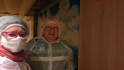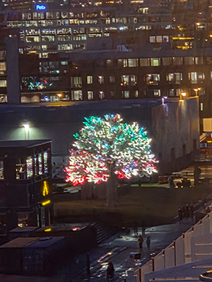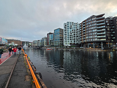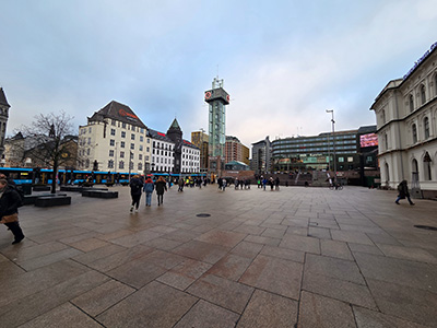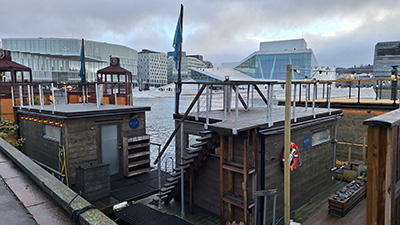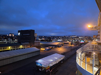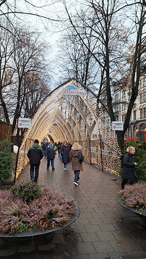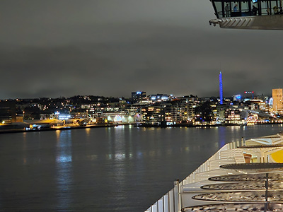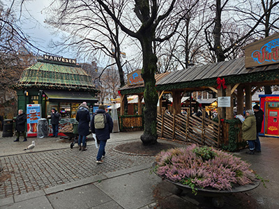 Wir sind noch im Dunklen in den Fjord von Oslo eingefahren, und haben so gegen 08:00 in Oslo angelegt. Fein wenn man vom Bett aus zusehen kann 🙂 . Vom Liegeplatz in Oslo kommt man ohne Shuttle in ein paar Minuten zu Fuss in die Innenstadt und zu den Hotspots. Wir sind nach dem Frühstück auch los, sehr warm angezogen, fast schon zu warm. Es hatte so um die 4 bis 5 Grad, nur der eisige Wind und die Feuchtigkeit haben es sich kälter anfühlen lassen. Am Weg den Hafen entlang und bei der Burg vorbei weiter zur weltberühmten Oper, sind wir bei den schwimmenden Saunen vorbei gekommen, wo die Norweger teilweise in Badehose und Bikini herumgelaufen sind, und dann auch ins Meer baden gegangen sind. Es war ein ziemlicher Kontrast. Auf der einen Seite Bikini und Badehose, auf der anderen die Touris angezogen wie Polarforscher 🙂 . Auf die Oper sind wir natürlich raufgelaufen, und dort haben wir dann schon die für uns heimlichen Stars von Oslo das erste Mal gesehen. Es gibt unzählige junge Möwen, die absolut nicht scheu sind. Bis einen halben Meter und weniger, kann man problemlos zu ihnen hingegen. Von der Oper sind wir weiter zum Munch Museum, das wir uns von kurz innen angesehen und ein wenig aufgewärmt haben. Von hier sind wir zurück in die Innenstadt gegangen und weiter zum Weihnachtsmarkt gebummelt. Der Weihnachtsmarkt war ok, aber nichts wirklich Herausragendes. Aufgefallen ist auch, das er kulinarisch eine ziemlich Wüste war. Korn Dogs und uns nicht ansprechende Burger waren die typisch nordischen 😉 kulinarischen „Highlights“, viel mehr hat es nicht gegeben. Von hier sind wir dann bei schon wieder beginnender Dämmerung zum Schiff zurück gegangen. Es wird hier viel später hell, und um 15:30 ist es wieder finster. Um auf das Schiff zu kommen, wurden wir drei Mal kontrolliert, und wir und die Rucksäcke wurden gescannt. Mit der Sicherheit nehmen sie es wirklich ernst. Man muss sich auch vor dem Betreten des Schiffes die Hände desinfizieren, und auch vor jedem Restaurant. Am Schiff haben wir uns einen Vortrag über Göteborg auf der Bühne angesehen, noch nicht wissend, dass uns die Infos nichts bringen würden. Während des Essens haben wir eine Ansprache vom Kapitän bekommen, dass das Schiff wegen zu viel Wind nicht nach Göteborg fahren kann. Als Ersatz würden wir aber schon morgen zu Mittag in Kopenhagen anlegen, und einen halben Tag, die Nacht und den nächsten Tag bis 16:00 Uhr dort liegen bleiben würden. In Summe waren wir gar nicht böse. Göteborg wäre sicher auch spannend gewesen, aber es war dort Wind und Regen angesagt, und das wäre sicher nicht lustig beim Sightseeing gewesen. Und außerdem war jetzt auch ein Besuch im Dunklen am Tivoli möglich. Um 18:00 Uhr hatte das Schiff in Oslo wieder abgelegt und ist den Fjord hinaus gefahren. Anfangs während des Essens war es noch recht ruhig, außerhalb des Fjords waren aber 3,5 Meter Wellen und bis zu 65 km/h Wind. Das war dann schon deutlich zu spüren. Mit unseren Tabletten gegen Reisekrankheit war das aber kein Problem. Nach dem Essen sind wir in das Atrium gegangen, der großen Bühne von Deck 6 bis 8, wo wir eine Lesung des bekannten deutschen Schauspielers Rufus Beck angeschaut und angehört haben. Obwohl ich anfangs skeptisch war ob das was für mich ist, war es wirklich gut und lustig. Er hat sich ausgiebig über die deutsche Sprache lustig gemacht 🙂 . Die Nacht war ein wenig unruhig und wir sind beide mehrmals aufgewacht wegen dem Schaukeln. Aber zumindest Reisekrankheit und Übelkeit hatten wir nie.