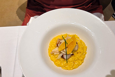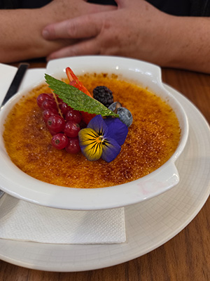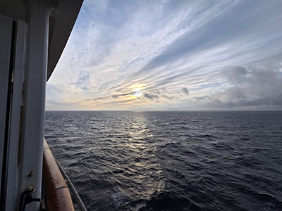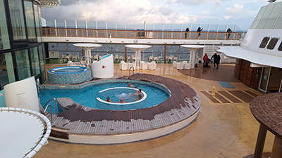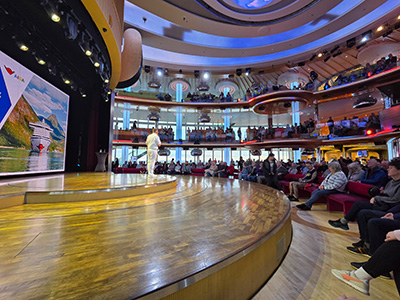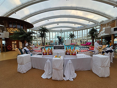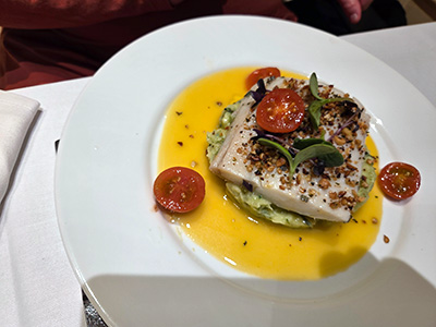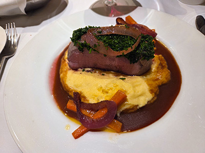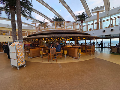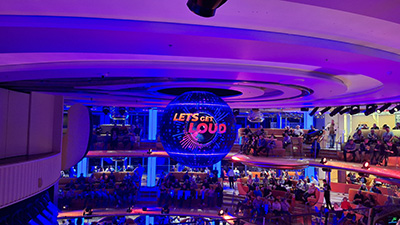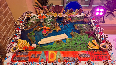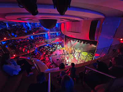 Den einzigen reinen Seetag haben wir neben drei Mal Essen gehen, Frühstück, Mittag und Abend im vor reservierten Gourmet Restaurant Rossini, mit Erkunden vom Schiff, Ansehen diverser Shows und einer wirklich interessanten Küchenführung verbracht (erstes Foto 🙂 ). Es war spannend zu sehen wie die Essens Logistik funktioniert und wie die Speisen vor- und zubereitet werden. Und auch wie die ganze Lagerung der Lebensmittel funktioniert. Das Schiff wurde auch immer mehr weihnachtlich geschmückt, sodass schön langsam eine echte Adventstimmung aufkam. Die Shows sind gut und die Darsteller auf einem sicher höherwertigen Niveau als zum Beispiel die Animateure auf einem Campingplatz. Die Nacht war nicht ganz so ruhig wie die vorige, da inzwischen der Wind aufgefrischt hatte und laut Windy App 1,6 Meter hohe Wellen waren. Aber das Schaukeln war gerade so merkbar und noch nicht störend.