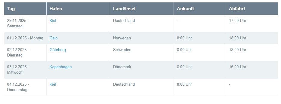 Ziel: Wien, Hamburg, Kiel, Oslo, Kopenhagen