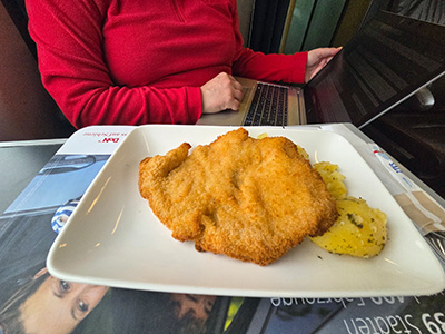 Gepackt hatten wir das meiste bereits gestern, heute vorm Frühstück haben wir nur mehr schnell den Rest eingepackt. Das Servicepersonal war heute sehr ruhig, gestern hatten sie bis 03:00 eine Bordparty, da ihre Hotelmanagerin Geburtstag hatte. Nach dem Frühstück sind wir in die Kabine gegangen unser Gepäck holen und haben gegen 09:00 Uhr das Schiff verlassen. Der Schnee war größtenteils weg und wir sind ohne Probleme zur U-Bahn-Station gekommen. Am Bahnhof haben wir die Koffer abgegeben und sind dann wieder in die Stadt gefahren. Vom Stephansplatz sind wir über die Hofburg bis zum Museumsquartier spaziert. Dort haben wir in einer Konditorei eine Pause gemacht. Inzwischen hat das Wetter umgeschlagen, und zum schon immer starken Wind ist auch ein wenig Regen gekommen. Deswegen sind wir bei der Station Neubaugasse wieder in den Untergrund gegangen, und zum Naschmarkt gefahren. Nach einer kleinen Runde dort sind wir gut Essen gegangen und dann wieder auf den Hauptbahnhof zurück gefahren. Dort haben wir unsere Koffer wieder abgeholt, und sind nach einer kurzen Pause zum Bahnsteig gegangen. Unser Zug, und viele andere ☹ hatte 20 Minuten Verspätung. In der ersten Klasse im Ruheabteil war es wieder sehr ruhig, bis Graz waren wir allein im Abteil. Von ein paar Besuchen vom Schaffner, und dem Mitarbeiter vom Speisewagen abgesehen, war es absolut ruhig. Und der Mitarbeiter vom Speisewagen ist vermutlich auch nur immer zu einer Siesta in der leeren Businessclass hinter uns verschwunden 😊. In Graz waren wir schon wieder fast pünktlich, und mit der Straßenbahn waren wir auch bald wieder beim Stadion und kurz darauf auch wieder zuhause.