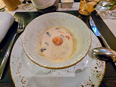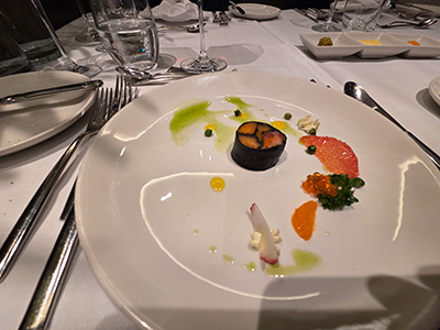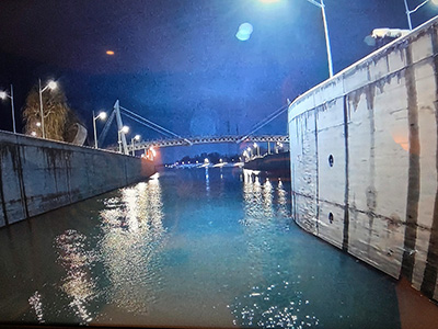 Nach dem Aufstehen bin ich schon ein paar Minuten zu früh zum Frühstück gegangen, und habe dem Schleusen bei der riesigen Schleuse vor Bratislava zugesehen. Danach haben wir gemütlich gefrühstückt. Danach sind wir wieder in unsere Kabine gegangen, da wir erst am frühen NAchmittag in Bratislava anlegen würden. Mittags sind wir ins Bistro gegangen, wo wir auch am Abend einen Tisch reserviert hatten. Das Essen war auch hier super, nur die Raucher die unbedingt immer quer durchs volle Lokal und direkt neben den Tischen rausgehen mussten, haben ein wenig gestört. Das könnte man besser lösen. Inzwischen hatten wir in Bratislava angelegt, unweit der Stelle wo der Twinliner von Wien kommend auch anlegt. Das Wetter war bescheiden, es war kalt, hat geregnet und zusätzlich war ein ziemlicher Wind. Da wir eigentlich schon alles von Bratislava angeschaut hatten, als wir vor einiger Zeit mit Zug und Twinliner da waren, hat sich die Faulheit durchgesetzt und wir eine Siesta bis ca. 18:00 Uhr gemacht. Dann sind wir in die Lounge gegangen, wo die morgige Ausschiffung erklärt wurde, die Granden des Schiffs wieder eine Ansprache hielten und es einen Farewell Cocktail gab. Diesmal hat der Kapitän sogar einen ganzen Satz von sich gegeben 🙂 , großer Redner dürfte er keiner sein. Danach sind wir wieder hinter ins Bistro gegangen und haben dort gut gegessen. Der obligatorische Lounge Besuch danach, war aber eher kurz. Das Konzert von Quintett aus Bratislava war gut, und der Bordmusiker danach auch, aber heute war die Stimmung bei allen eher etwas gedämpft. Gestern war es doch ein wenig spät bei sehr vielen 😊