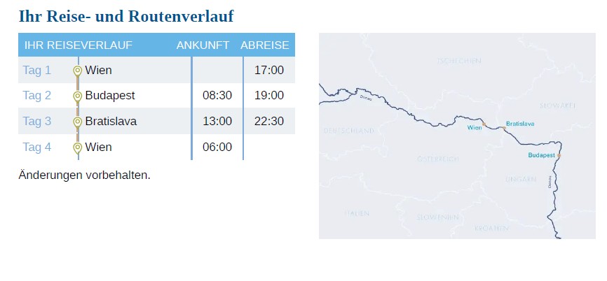 Strecke: Graz – Wien – Budapest – Bratislava – Wien – Graz